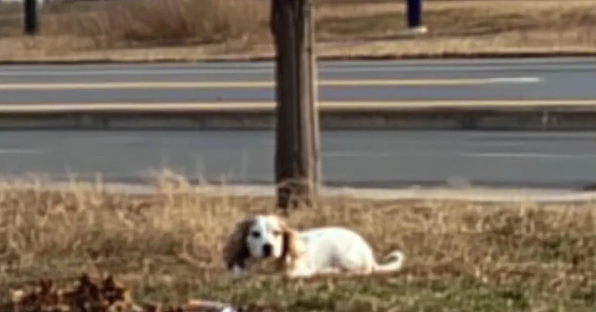 As the rescuers approached Pretzel, they noticed he was hunched over something on the road. To their heartbreak, they realized he was trying to eat a bird that had already passed away.